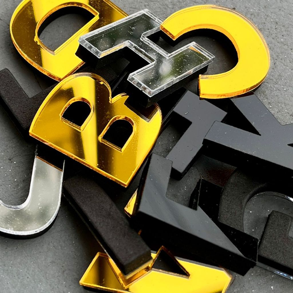 4. Huruf Akrilik Mirror (Emas atau Perak)