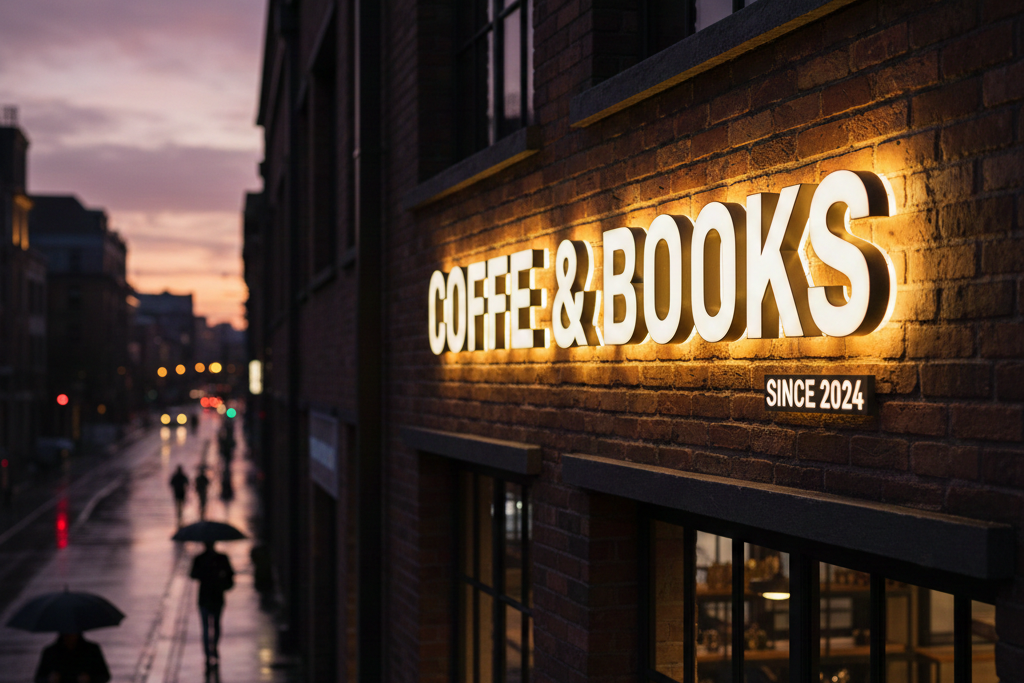 Agar tetap terlihat jelas pada malam hari, banyak bisnis memilih huruf timbul outdoor yang dilengkapi dengan pencahayaan.